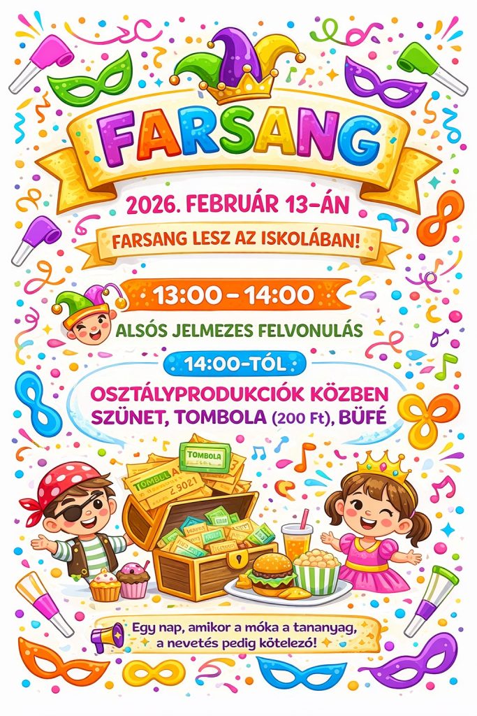 💃Szeretettel várunk mindenkit iskolánk farsangi bulijára,🎭